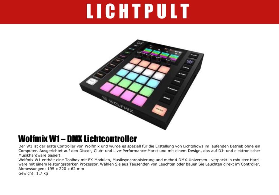 Für die Lichtsteuerung nutze ich einen modernen Licht-Controller, mit dem ich verschiedenste Lichteffekte und Geräte präzise steuere.