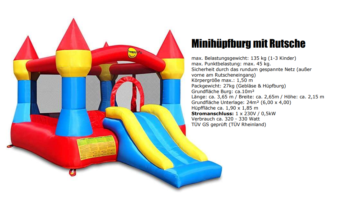 • Grundfläche der Hüpfburg: ca. 10 m²