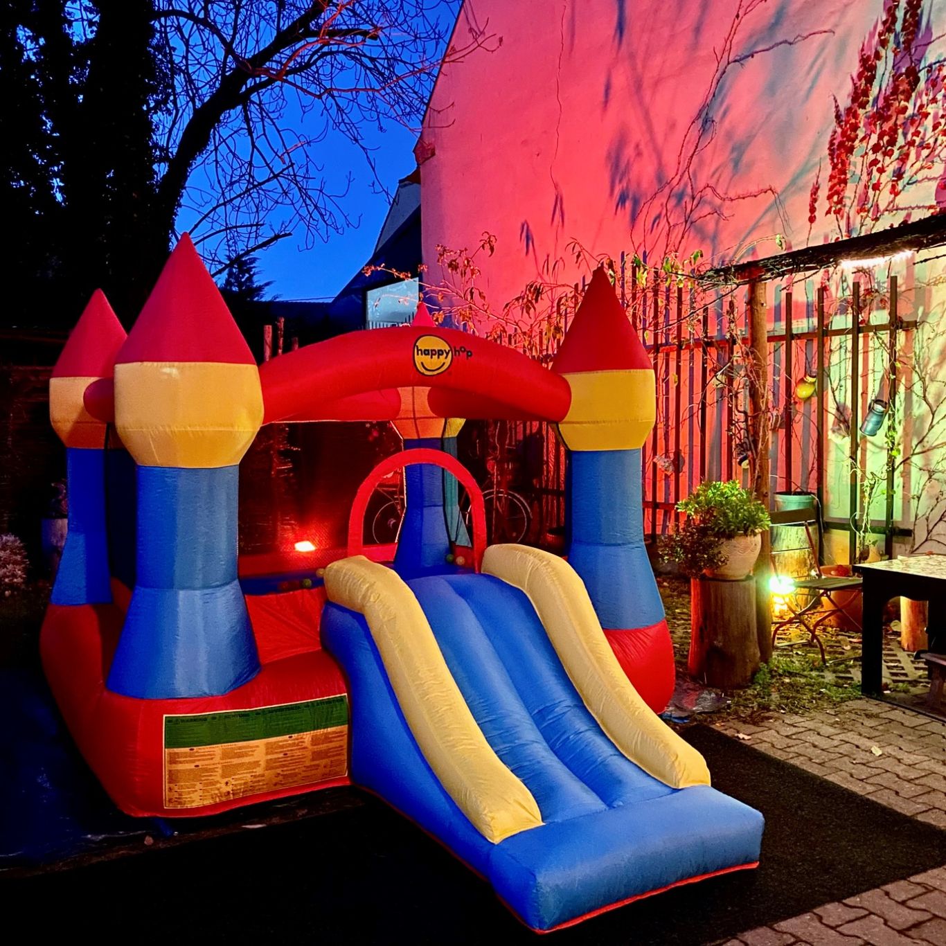 Mit meiner MinHüpfburg mit integrierter Rutsche biete ich den perfekten Spielspaß für die kleinen Gäste – ideal für Hochzeiten, Familienfeiern oder Gartenpartys.