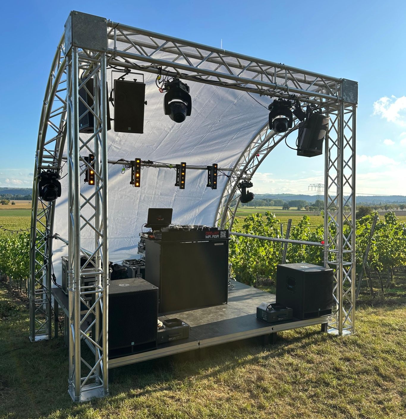 Kein Problem! Dank meiner zuverlässigen Partner aus der Event- und Veranstaltungstechnik kann ich dir auch komplette Bühnenlösungen anbieten – perfekt für Hochzeiten, Firmenevents, Open-Air-Feiern oder größere Shows.
